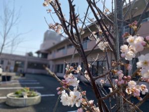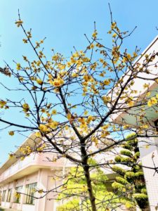 グループホームのBユニットの前に、かわいらしい蝋梅が咲いています。