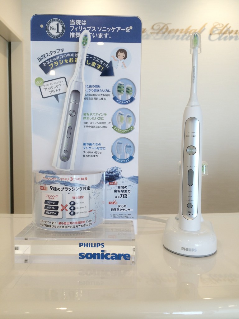 ブログ 音波式電動歯ブラシ ■2014.05.16木下歯科医院日本では30歳以上の約80%が歯周病と言われています。 歯周病を予防するには毎日の歯磨きが重要となります。 確実に歯垢を除去するには、時間と労力がいりますよね。 そこでうちの院長が使い始めたのがフィリップスソニッケアーの「フレックスケアープラチナ」です。 これを使うことで早く、簡単に、しっかり磨けるということで購入してみました。 手磨きでは実感できないくらいツルツルな歯になりました! 受付に見本がありますので、興味がある人は是非! 一覧に戻る ▲ページトップへ