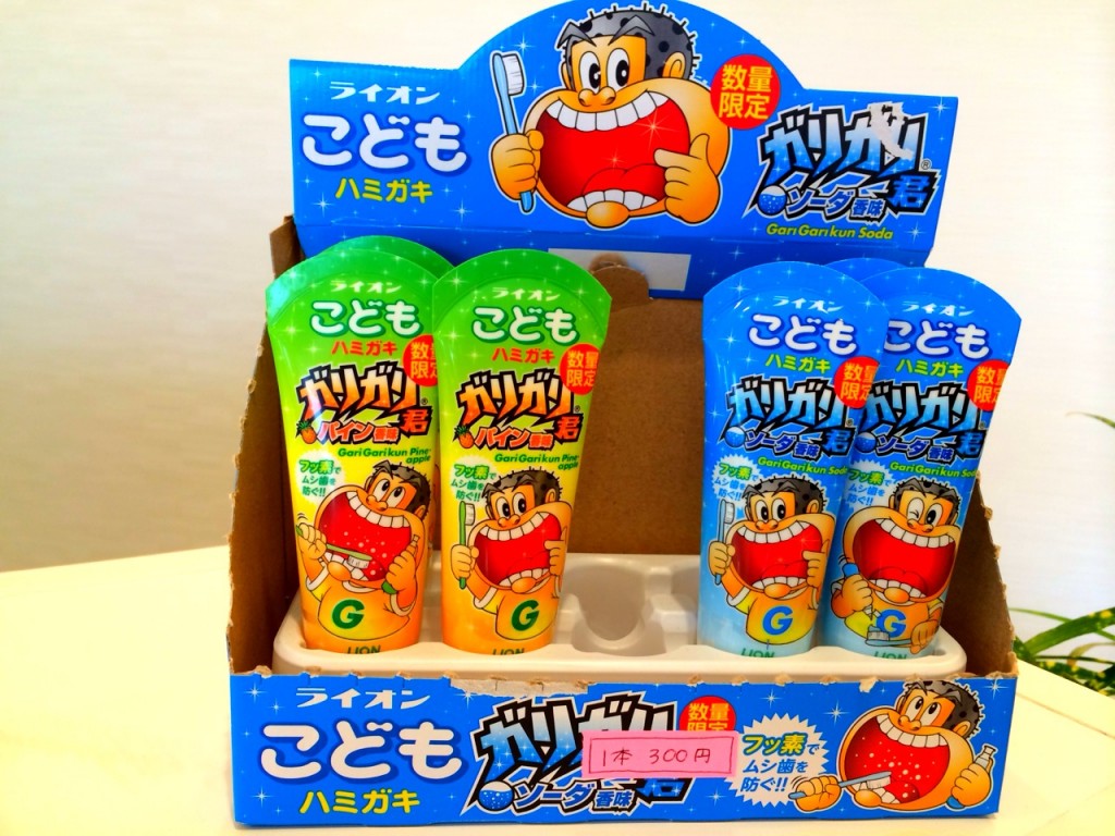 ブログ あのガリガリ君が歯みがき粉になった! ■2014.02.28木下歯科医院人気のアイスキャンディーガリガリ君のソーダーとパイン香味の歯みがき粉を 木下歯科医院の受付で販売しています。(1本300円) 子どもが楽しく自発的にできる歯みがき習慣を応援する考えでライオンから発売されています。 薬用成分「フッ素(フッ化ナトリウム)」配合で酸に負けない歯を作り、むし歯を予防します。 一覧に戻る ▲ページトップへ