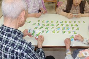 トランプを楽しみにデイサービスに参加されている方もいます。順番が来る前に出す人や、出せないカードを出す人もいて、わいわい言いながら楽しまれています。