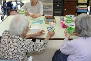各個人での作業ですが、利用者様同士での仲良くお話も弾み、いつも笑顔で楽しんで作業していただいています。 |