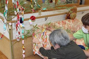 活動内容 活動内容 グループホームきりんでは、様々なレクレーションやお楽しみイベントや活動を行っています。 その一例をご紹介します。 みんなでじゃんけん! 大人数ですると、あいこが続くよ~ みなさん真剣な表情で取り組まれていました! 七夕の飾りつけ!みんなで願い事を書いたよ☆ ”星の飾りのきれーかね~!” いちっ!にっ!さんっ! 体操の時間です! みなさんの清々しい顔が素敵でした! ”体操は気持ちのよかね~” ▲ページトップへ