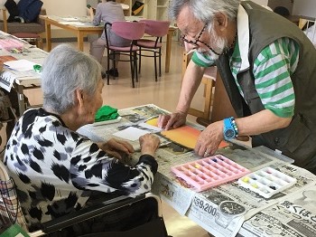 老健で毎月2~3回、月曜日に外部から先生を招いて、パステルクラブを開催しています。