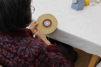 | 小集団活動 グループでカレンダーを作ったり作品を作り趣味の作品展に出展をしています。作業療法士がおこなっています。 | ![]() |