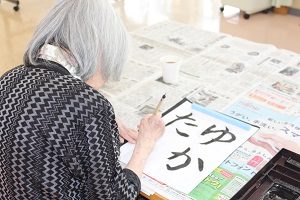 | 書道教室(火曜、金曜)希望者の方に作業療法士がおこなっています。 | ![]() |