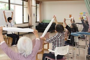 集団リハビリ(月~土の11時から30分程度) 介護職員が体操や歌などを皆様と一緒におこなっています。 |